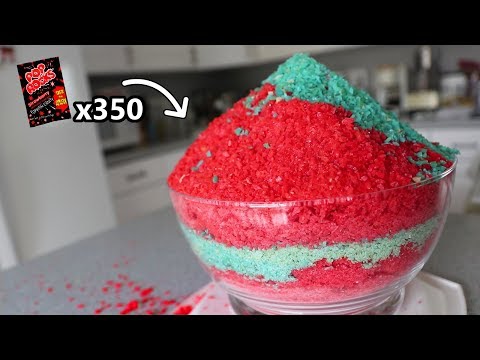 Wettkampf-Schnellesser Matt Stonie hat bereits jede Menge Unsinn in sich hineingeschaufelt (zum Beispiel 12 Donuts in 30 Sekunden), aber das hier dürfte eine seiner bislang skurrilsten Eat-Challenges gewesen sein. Ihr kennt doch sicherlich noch diese Knisterbrause, oder? „Pop Rocks“ heißt die, von der man normalerweise einen halben Mund voll in sich schüttet, um es im Inneren des Mundes knistern zu lassen. Matt hat einfach mal 350 Packungen davon auf einen 3,6 Kilogramm schweren Berg gehäuft und sich vorgenommen, diesen auszulöffeln. Wird er es schaffen? Und wenn ja, in welcher Zeit?
