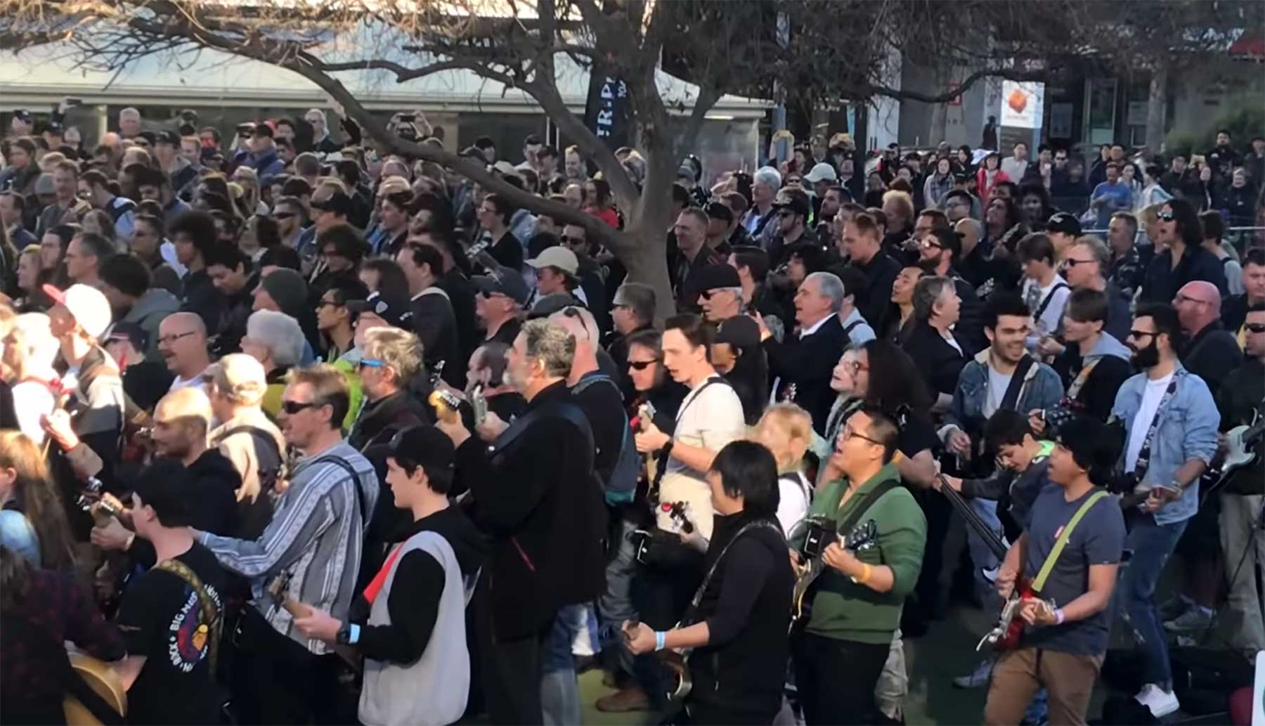 Vermutlich kennt ihr die „Rockin‘ 1000„, die bereits gezeigt haben, dass gemeinsames Musizieren im Großverbund ziemlich genial sein kann. Die sind aber ja nach Instrumenten oder Gesang aufgeteilt, entsprechend kommen sie auf weniger Gitarristen als dieser im Rahmen des „Sydney Guitar Festivals“ aufgestellte neue Weltrekord. 457 Leute spielen gleichzeitig den AC/DC-Klassiker „Highway To Hell“. Und das klingt nicht mal scheiße.