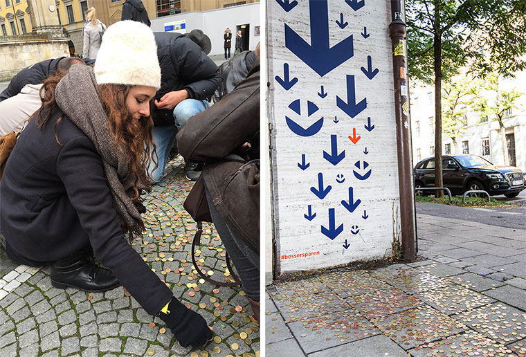 Jeder von euch hat sich bestimmt schon einmal über gefundenes Geld gefreut. Sei es in der Tasche der alten Winterjacke, im vergessenen Geheimversteck oder auf der Straße. Bei der Aktion #bessersparen haben einige Münchener sich richtig freuen können. Denn plötzlich lagen am Odeonsplatz und der Münchener Freiheit satte 5.000 Euro in Münzen auf dem Boden. Zum Mitnehmen. Kurzweilige Aktion von WeltSparen.de zum offiziellen WeltSparTag am 30. Oktober.