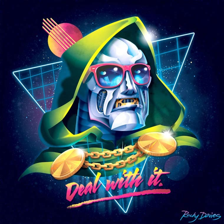 Tolle Illustrations-Serie von Rocky Davies aus Idaho, der uns Superbösewichte aus 80er Jahre-Sendungen in allerfeinstem Retro-Neon-Charme präsentiert. Digital Paintings mit Shredder oder dem Joker im kunterbunten Retro-Setting mit Songtiteln aus der damaligen Zeit? Love it!