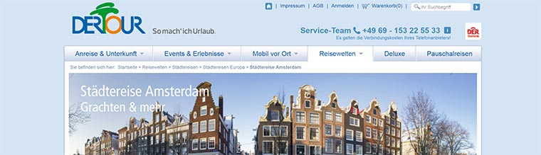 Tipps und Ideen für viele europäische sowie einige weitere Städte gibt es bei DERTOUR auch in der Rubrik 48 Stunden in … sowie in den Insidertipps Städtezauber. Für Amsterdam gibt es leider noch keine solche Texte (kommen aber sicherlich noch, da die Seiten immer weiter ergänzt werden), dafür aber zum Beispiel für Hamburg, Berlin, Budapest, London, Paris und New York.