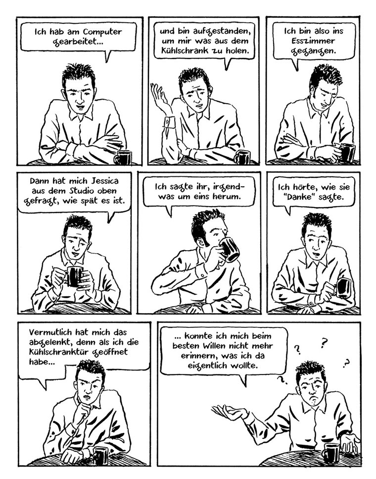 „Aus verschiedenen Perspektiven, in unterschiedlichen Stilen oder mit erzählerisch-gestalterischen Kniffen und Beschränkungen. Das ist nicht nur ein Lesevergnügen, das sich aus der Verbindung der profanen Szene mit ihren cleveren Abwandlungen ergibt, sondern auch ein interessanter Einblick in die Mechanik des Comics. Es geht um die vielfältige Frage, wie man im Comic erzählen kann und welche Mittel dem Autor dafür zur Verfügung stehen.“