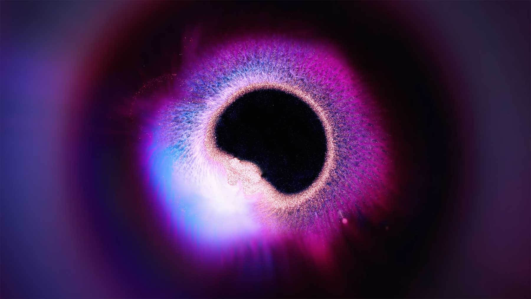 „This abstract 8K video was inspired by the visual similarity of the cosmic nebula and the iris of the eye. The iris, with its intricate patterns and colors, shares a striking resemblance to the vibrant and colorful cosmic nebula. Just as the iris is a window to the soul, the nebula serves as a window to the vast universe beyond. Both the iris and the cosmic nebula contain a variety of hues and shades that blend and dance together to create a unique and mesmerizing visual display. The iris’s delicate curves and lines mirror the sweeping curves and swirls of the nebula’s gaseous clouds. The iris, with its distinctive central pupil, recalls the cosmic nebula’s central star or black hole, around which the colorful gases and dust swirl. The cosmic nebula and the iris share a deep artistic connection, as both offer a glimpse into something beyond ourselves, whether it is the inner world of emotions and thoughts or the vast expanse of the cosmos.“