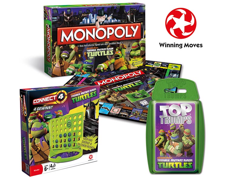 Das Highlight dürfte definitiv das Teenage Mutant Ninja Turtles Monopoly sein. Splinters Dojo statt Schlossallee, Foot Clan Versteck statt Schillerstraße und coole Turtles-Spielfiguren – nice. Was würde vom Titel besser zu dem Schildkröten-Quartett passen als 4 gewinnt? Richtig: ein Quartett! Top Trumps ist quasi die moderne Variante des Klassikers, nur eben mit Schildkröten.
