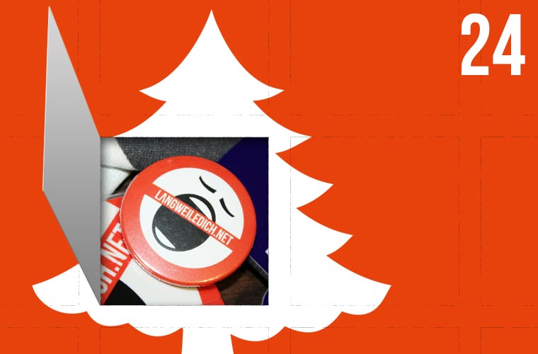 Wow, das ist das Ende vom LangweileDich.net-Adventskalender! Etwas traurig schon, dass es vorbei ist – aber ganze ehrlich bin ich auch etwas glücklich darüber. Das war in der Umsetzung im Vorweihnachtsstress anstrengend genug und eigentlich habe ich gerade die Schnauze voll von Gewinnspielen… Das sind einfach zu viele im Moment, erst einmal abkühlen…