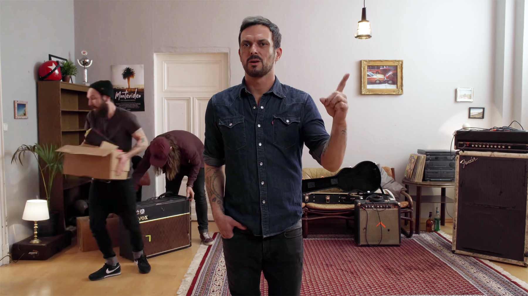 Ich mag die Idee von Regisseurin Greta Horsch, im Musikvideo zur neuen Alex Mofa Gang-Single „Ende offen“ Sänger Sascha Hörold einfach mal etwas im Zeitstrudel versinken zu lassen. Indem man ihn auf eine stark verlangsamte Version des Songs hat singen lassen, konnte man mittels Zeitraffertechnik den Eindruck erwecken, die Welt um ihn herum würde sich im Schnellspul-Vorlauf bewegen, während er im Normaltempo existiert. Das hätte für mich gar noch ein, zwei Stufen extremer sein dürfen, aber vermutlich wollte man, dass man die Hintergrund-Aktivitäten noch locker nachvollziehen kann.