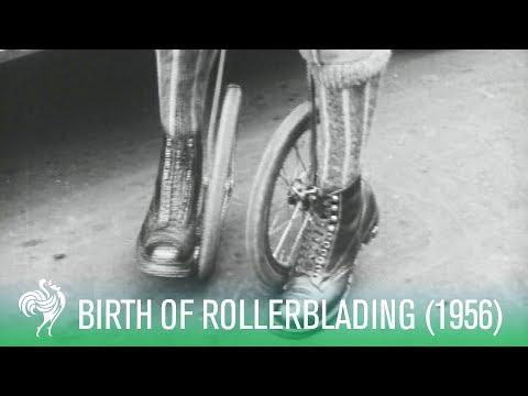 „Men is Paris enjoy the new sport of 1923, Cycle-skating – new sport which involves strapping a wheel to the side of the feet and skating.“