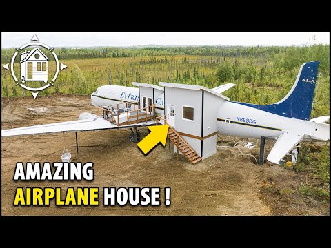 „Jon and Stephanie built a unique home inside a repurposed airplane! This 650 sq ft, 2 bed 1 bath home is complete with a full kitchen, wing deck, and flight simulator! In this episode, they’ll take you on a tour of their property, and explain the challenges they faced building out a home with wings.“