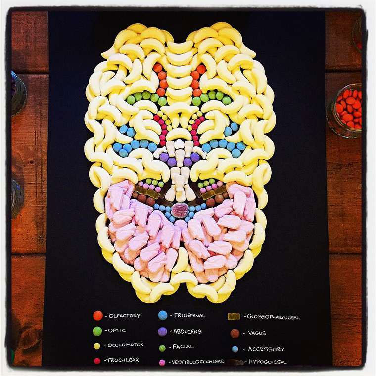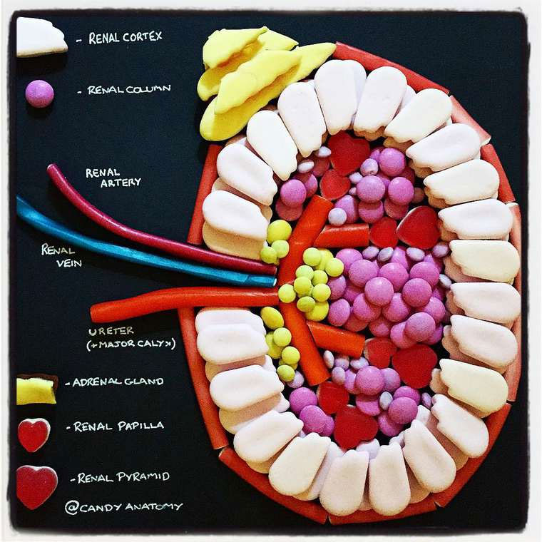 Mike McCormick ist da deutlich disziplinierter unterwegs. Der Medizin-Student an der Glasgow University stellt Anatomie-Diagramme mit Süßigkeiten nach. Ich stelle mir dennoch vor, wie er direkt nach Schießen der jeweiligen Fotos seiner Candy Anatomy darüber her fällt, wie es jeder normale Mensch tun würde…