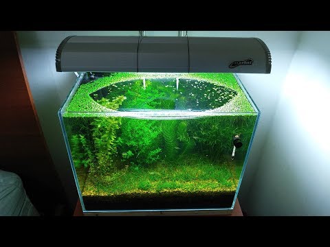 Foo the Flowerhorn hat entsprechend der Vorgaben natürliche Vorgaben für Flora und Fauna geschaffen, so dass die bereits von Beginn an ausgesetzten Arten nicht nur überleben, sondern sich beinahe evolutions-artig neue bilden und der gläserne Kasten so von Monat zu Monat weiter gedeiht und bereichert wird. Hier bekommen wir das Resultat nach sechs Monaten zu sehen. Schon irgendwie ganz schön. Und vor allem braucht man nicht viel zu machen (nach der vermutlich aufwendigen Start-Gestaltung).