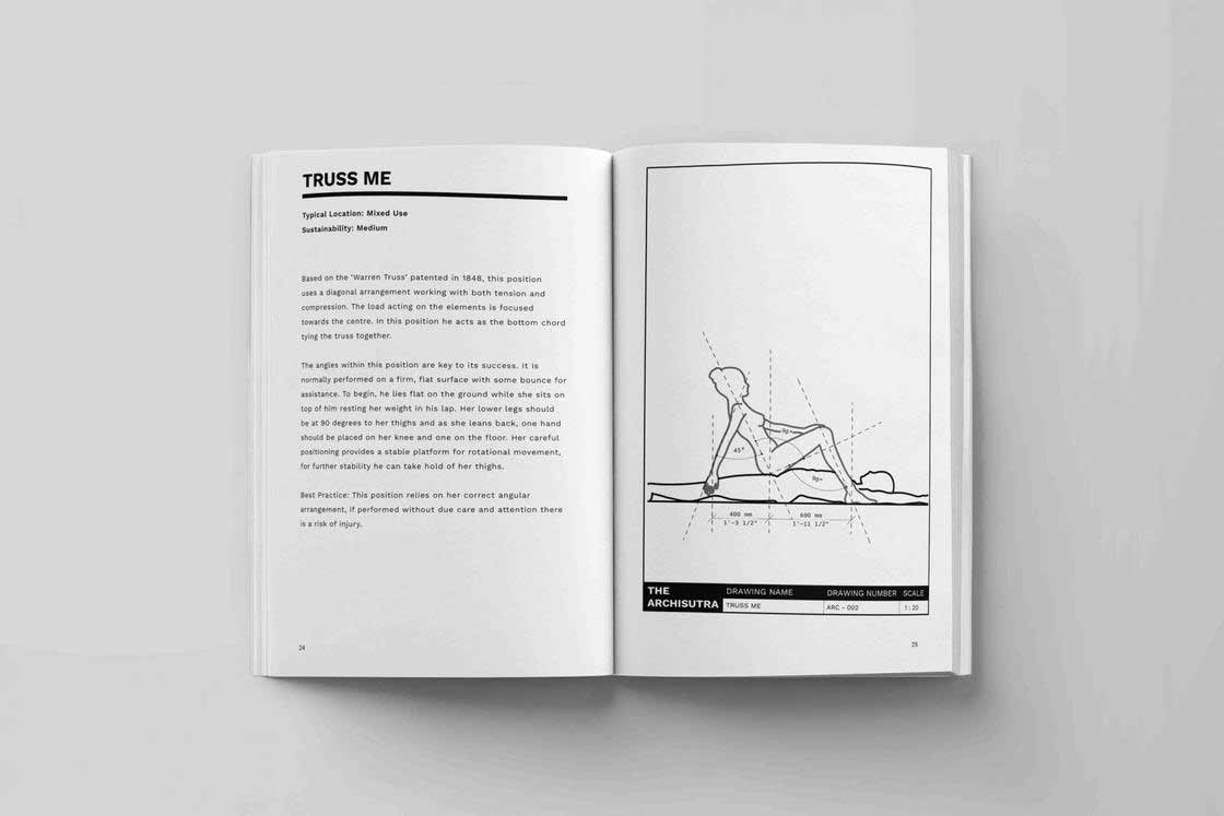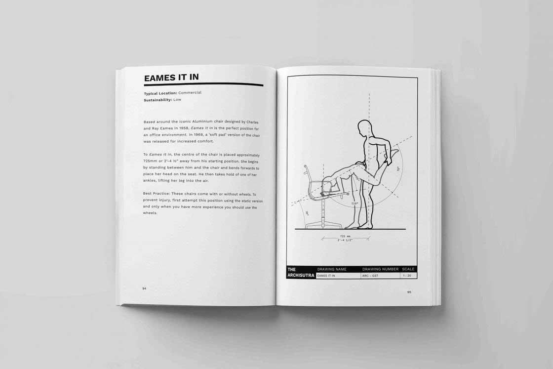 „The Archisutra is a design manual giving you the necessary data for a selection of sex positions, using annotated scale drawings and informative descriptions.“