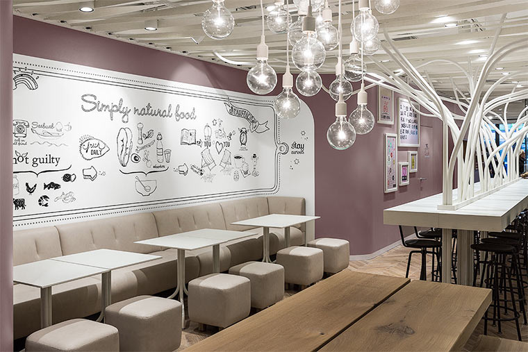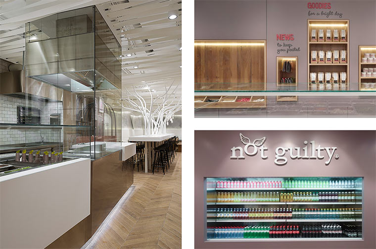 Die Stuttgarter Ippolito Fleitz Group hat der schweizer Restaurantkette Not Guilty einen neuen Anstrich verpasst. Das Auge isst ja bekanntlich mit und so sollte die nachhaltige Küche auch mit einer entsprechenden Innenaufmachung einhergehen. Glücklichsein vom Eintritt bis zum vollendeten Dessert. Zurecht wurden sie dafür mit dem 2013er red dot award communication design ausgezeichnet.