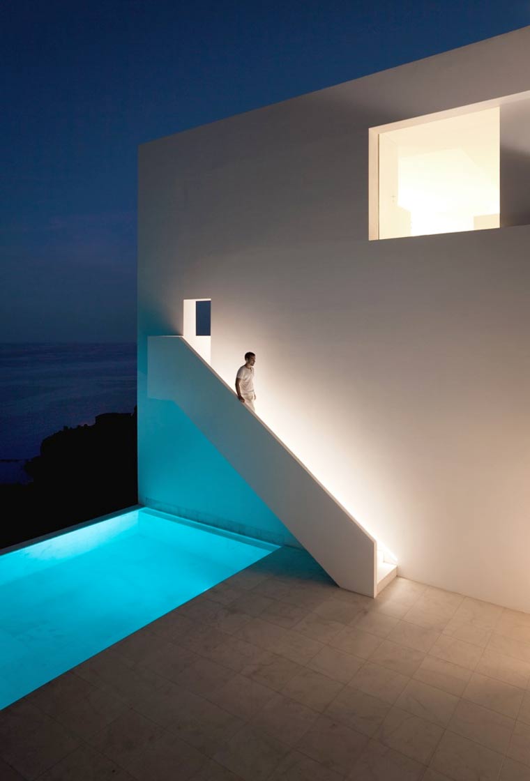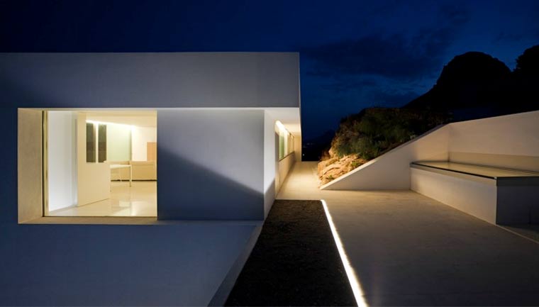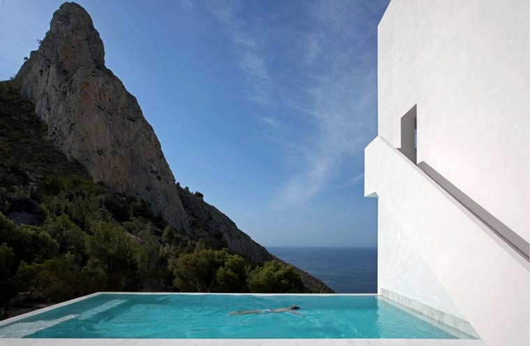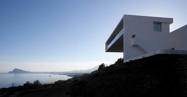 Minimalistischer Look ganz in Weiß. So kommt das House on the Cliff der Fran Silvestre Architects daher. Wobei, so richtig „daher kommen“ tut es eigentlich nicht. Es steht dagegen massiv in einen Berghang gesetzt, mit fantastischem Blick auf das Meer.