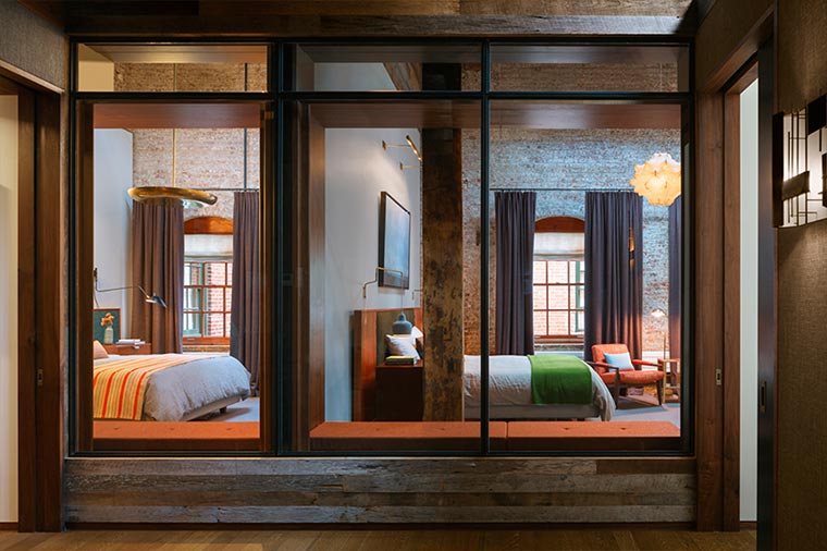 „Embracing the building’s industrial past, a visual discourse between new and old i devised through insertions of modern materials along with restored or reclaimed materials.“