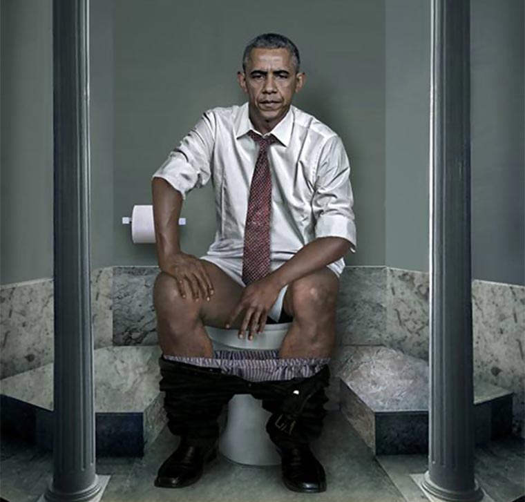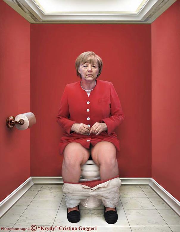 Wie das Ganze bei Obama, Merkel & Co. aussehen könnte hat sich die italienische Künstlerin Cristina Guggeri ausgemalt. Aber so richtig, inkl. verzerrten Gesichtern und herunter gelassener Hosen.
