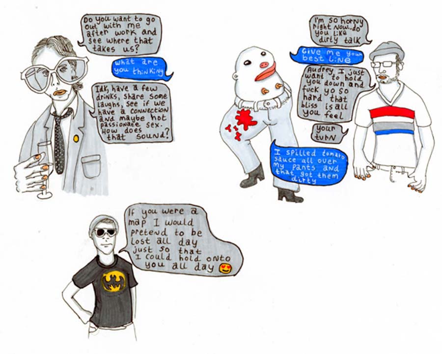 Ich habe nie Tinder benutzt und bin da eigentlich auch ganz glücklich vor. Dabei bin ich ja nicht einmal eine hübsche junge Frau, denn die dürften es am schlimmsten haben auf der Knick-Knack Liebes-Plattform. Wenn all dieses ach so originelle Testestoron mit einfältigen Anmachsprüchen auf sie einschreiben – oder (was ich irgendwie noch beunruhigender finde) einfach direkt und klar in unfeinstem NSFW drauf los schreiben.