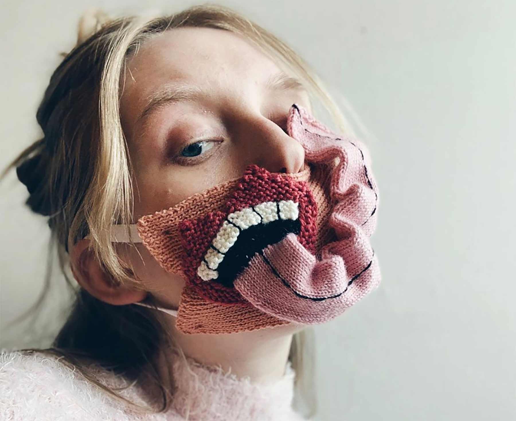 Die Coronavirus-Pandemie hat einem bislang größtenteils ignorierten Fashion-Accessoire zu erhöhter Aufmerksamkeit verholfen: der Gesichtsmaske. Okay, eigentlich sollte man es nicht als modisches Accessoire bezeichnen oder missbrauchen, immerhin ist die Lage so ernst wie der Zweck, den sie erfüllen sollen. Dennoch darf man ja durchaus modisch denken, so die Sicherheit gegeben ist. Bei diesen Ausführungen der isländischen WTF?!-Designerin Ýrúrarí ist jedoch größtenteils keine wirkliche Sicherheit beim Tragen gegenüber. Vielmehr handelt es sich um äußerst ausgefallene Modekunst. Mit wollenen Mündern und Zungen drauf. Okay…