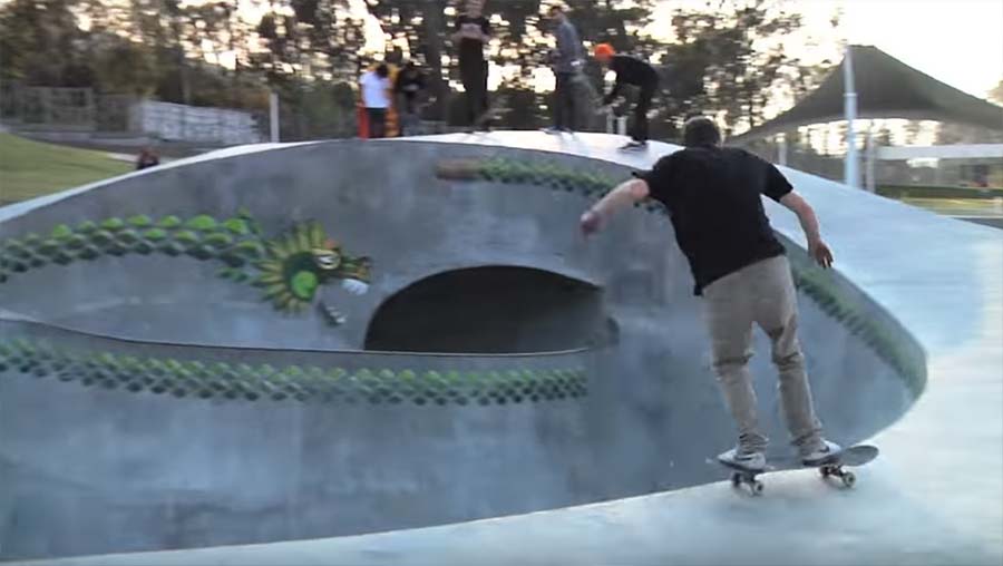 Nein, ein Skatepark muss nicht einfach nur aus langweiligen Rails, Half und Quarter Pipes bestehen, der darf auch gerne mal Spielplatzqualitäten aufweisen. Dieses Betonmonster aus Mexiko hat jedenfalls die ein oder andere oder weitere ausgefallene Attraktion auf Lager. Alleine diese verwundene Schlange – grandios! Thrasher hat das Teil besucht und ein paar Runden gedreht. Wenig spektakulärer Edit, dafür umso originellerer Spot.