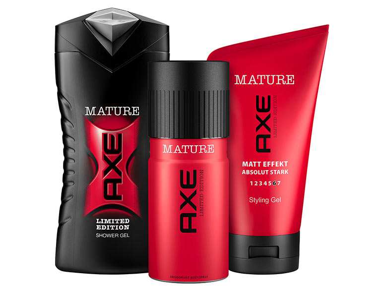 Der attraktiv-herbe Duft von AXE Mature vereint eine fruchtige Bergamotte-Kopfnote mit fein-holzigen Aromen von Zedernholz, Patschuli und Moschus. Ab September ist AXE Mature in Deutschland, Österreich und der Schweiz als Bodyspray, Shower Gel und Styling Gel erhältlich – nur für kurze Zeit.