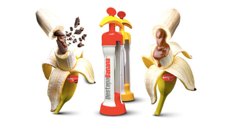 Okay, auf den ersten Blick sieht dieses Gerät doch etwas schmuddelig aus. Aber nein, die DestapaBanana ist nicht für die Anwendung am Menschen gedacht, sondern für unser aller Lieblingsstaudenfrucht. Eine Kanüle höhlt das Innere der Banane aus, das dann beliebig mit Süßigkeiten befüllt werden kann. Die Erfindung stammt aus Argentinien und muss dort zunächst finanziert werden. Ich selber liebe ja zum Beispiel Crêpes mit Banane und Nutella, da wäre das genau das Richtige für mich.