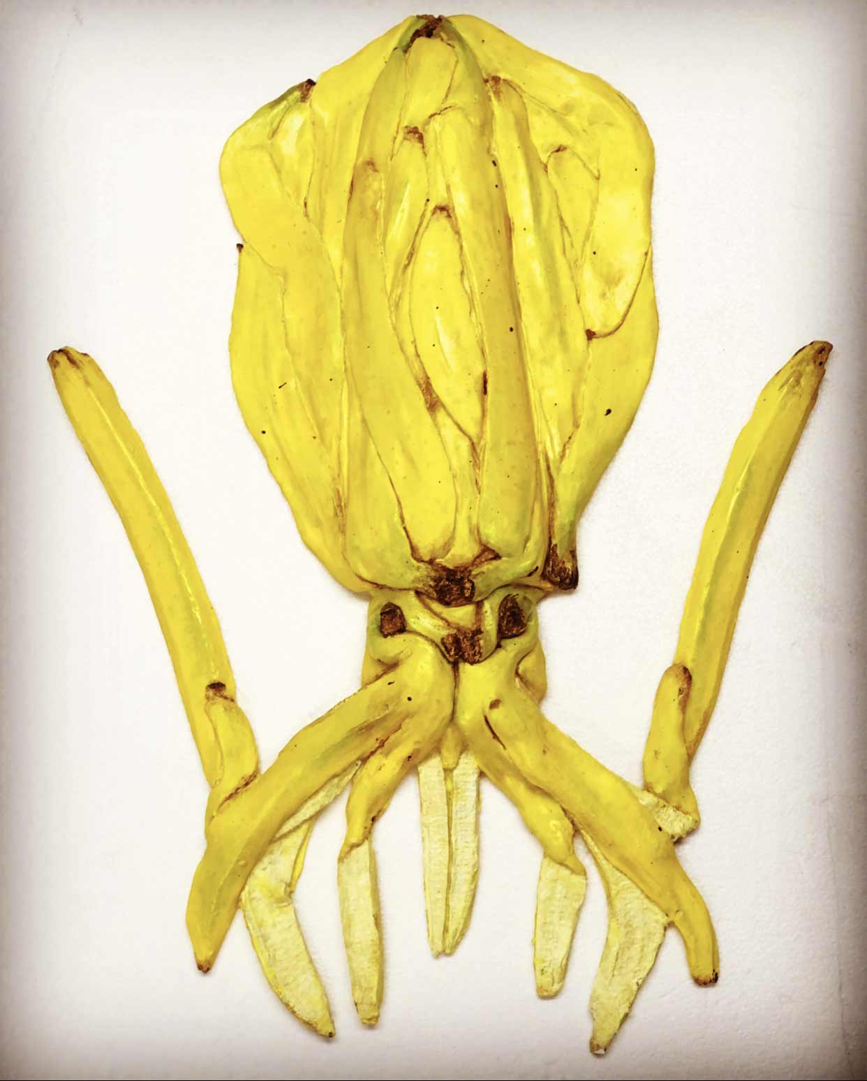 Letztes Jahr hatte ich sie zwar schon mal in den „Kleinigkeiten“ gefeatured, jetzt möchte ich die Arbeiten von Koji Kasatani aber doch nochmal separat anpreisen. Der japanische Künstler erstellt seit 2010 skurrile Skulpturen aus Bananen. Also, vermeintlich, sind die Keramik- und Harz-Werke doch lediglich in Bananen-Optik gehalten. Hätte aber auch was, wenn er mit echten (ggf. schockgefrorenen und irgendwie konservierten) Früchten arbeiten würde, die dann nach und nach ihre typisch gelbe Färbung verlieren und so ein lebendiges Kunstwerk schaffen würden.