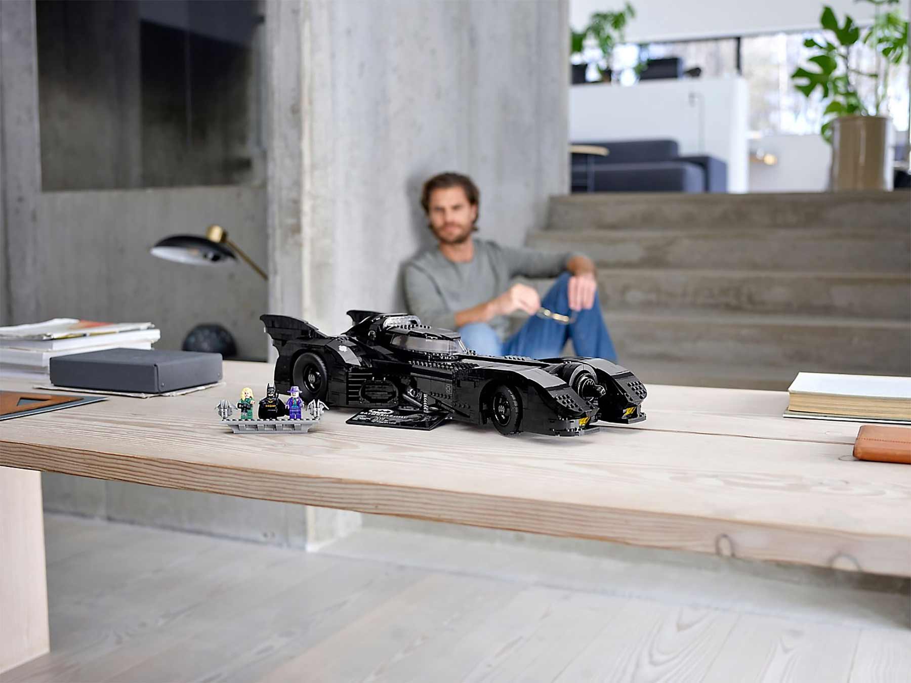 „Das LEGO Modell mit schönen Details bildet die klassischen Kurven des berühmten Batmobile, das im Batman-Film von 1989 zu sehen ist, perfekt nach. Das über 60 cm lange und aus 3.306 Teilen bestehende Modell bietet ein anspruchsvolles und lohnendes Bauerlebnis. Eingefleischte Fans werden die authentischen Details wie das aufschiebbare Cockpit mit einer umlaufenden Windschutzscheibe (neu ab November 2019), 2 versteckte Gewehre mit Klappfunktion, die durch Drehen des Turbinenauspuffs aktiviert wird, und dekorative Enterhaken auf jeder Seite des Fahrzeugs lieben. Das Batman Spielzeugauto wird mit einem rotierenden Präsentationssockel (mit angebrachtem Informationsschild mit Daten zum Batmobile von 1989) geliefert, der die Betrachtung von allen Seiten erleichtert. Das Superhelden-Konstruktionsset ist ein Muss für alle Batman-Fans. Es enthält auch 3 Minifiguren (neu ab November 2019) – Batman mit einem Umhang, der dem Outfit im Film von 1989 ähnelt, den Joker™ und Vicki Vale™ – sowie einen Minifiguren-Präsentationssockel aus Steinen.“
