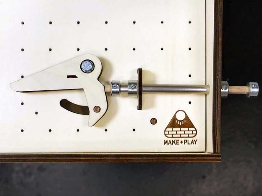 „Makerball is sturdy and solid with. The design is pure and simple. It consists mainly of wood and works with simple, reliable mechanics that are easy to understand. You also have the option of upgrading Makerball digitally: with a microcontroller and the free MAKE & PLAY score app on your smartphone, you can start playing for points!“