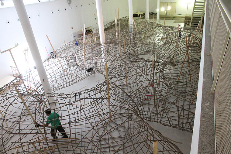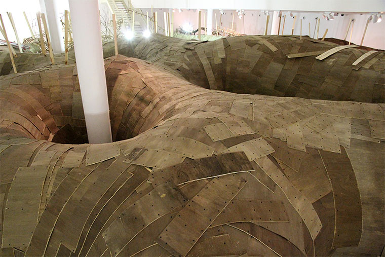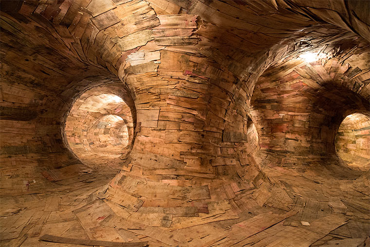 Wow. Eine gigantische Installation des brasilianischen Künstlers Henrique Oliveira. Transarquitetônica ist ein riesiges Gewölbe aus recyceltem Sperrholz. Wie ein unterirdischer Bau, dem Wurzelgeäst eines Baumes nachempfunden. Und so gigantisch, dass man problemlos hindurch laufen kann. Wer will, hat bis November die Möglichkeit dazu im Museu de Arte Contemporânea da Universidade in São Paulo. Muss ein ziemlich beeindruckendes Gefühl sein, dort durchzulaufen.