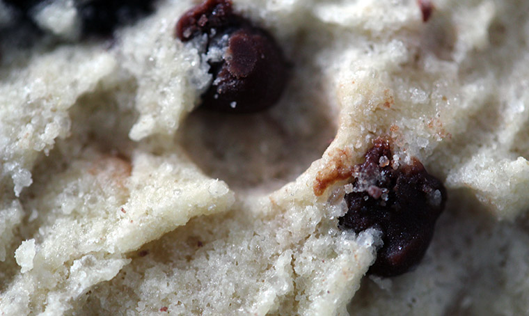 Die Süße kommt größtenteils von den Keksen, die erstaunlich wenig krümeln und einen guten Biss haben. Bei meinem zweiten Test-Exemplar war mir der Biss persönlich etwas zu „gut“, da der Keks zu hart war, was bei anschmelzendem Eis (ihr müsst IMMER Eis anschmelzen lassen, die Geduld lohnt sich!) nicht wirklich förderlich war. Geht aber auch so und das Vanille-Eis schmeckt vorzüglich. Die kleinen Cookie Dough-Teilchen runden noch etwas den Geschmack ab (mehr Keks!).
