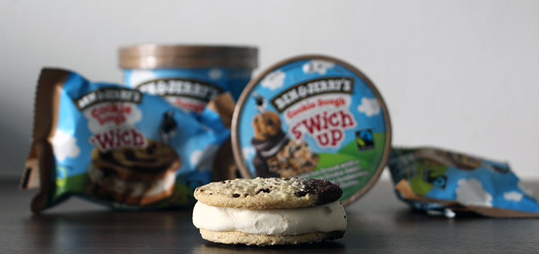 Als ich unser Wohnzimmer mit den Worten „Eis, Eis, Baby!“ betrat, hat mich meine bessere Hälfte nur doof angeschaut. Nach meinen Ausführungen, dass wir ein neues Produkt von Ben & Jerry’s testen können, hat sich die Verwunderung schnell in Wohlgefallen aufgelöst. Es geht um das 'Wich, das erste Produkt des fairen Eis-Herstellers, das nicht im Becher daher kommt. Zumindest nicht ausschließlich.