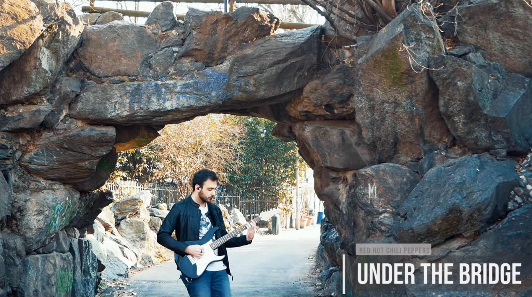 Schön Idee von Danilo Vicari, der ein paar der ikonischsten Gitarren-Riffs der Rockmusik-Geschichte an entsprechend passenden Orten intoniert. Sei es „Under The Bridge“ unter der Brücke, „Fuel“ an der Tankstelle oder „Welcome To The Jungle“ im Gebüsch.