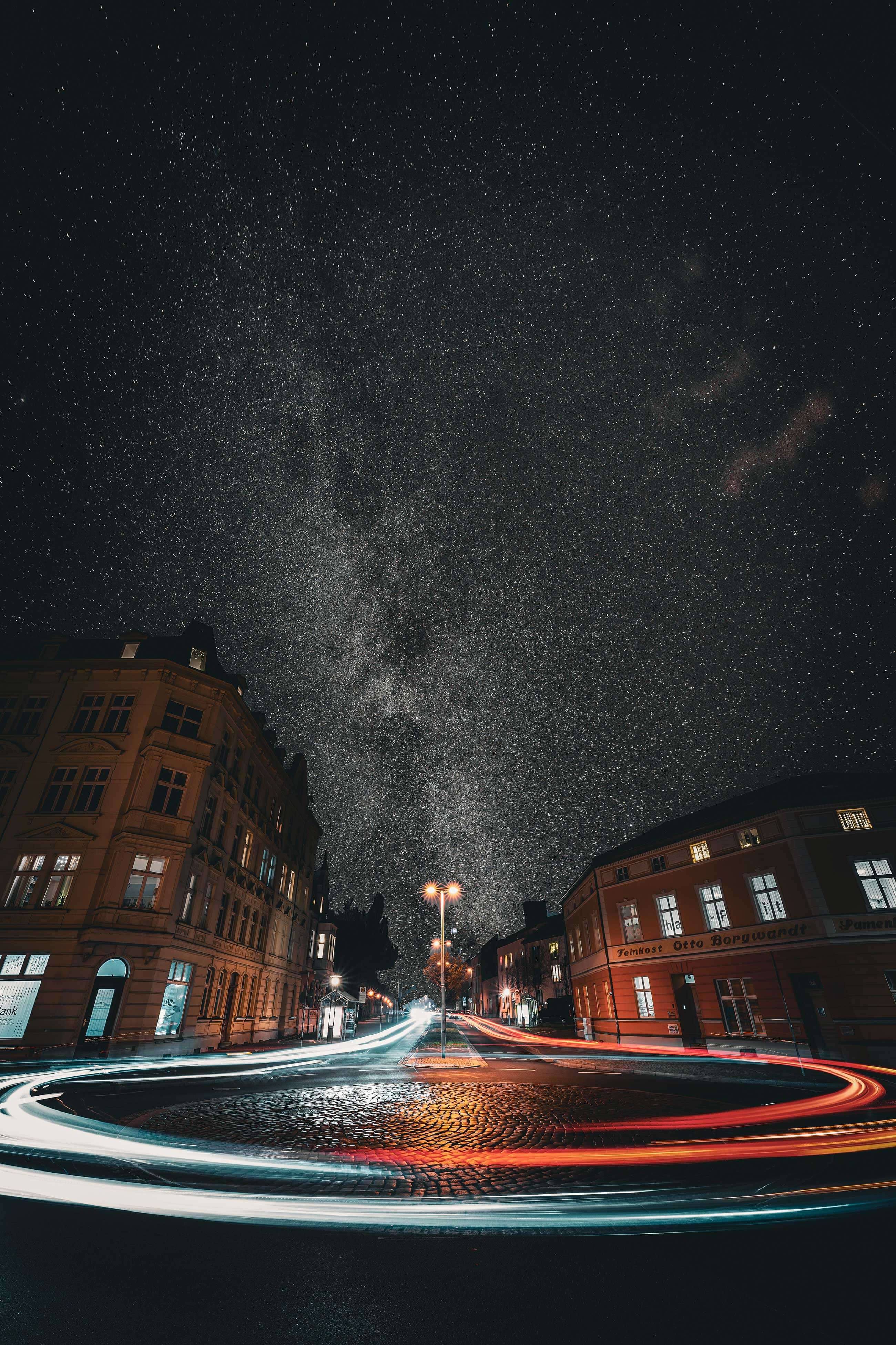 Also der Sternenhimmel in Stralsund ist leider nie so fake wie aufm Bild. Dennoch tolle Aufnahme mit dem Autolicht am roundabout