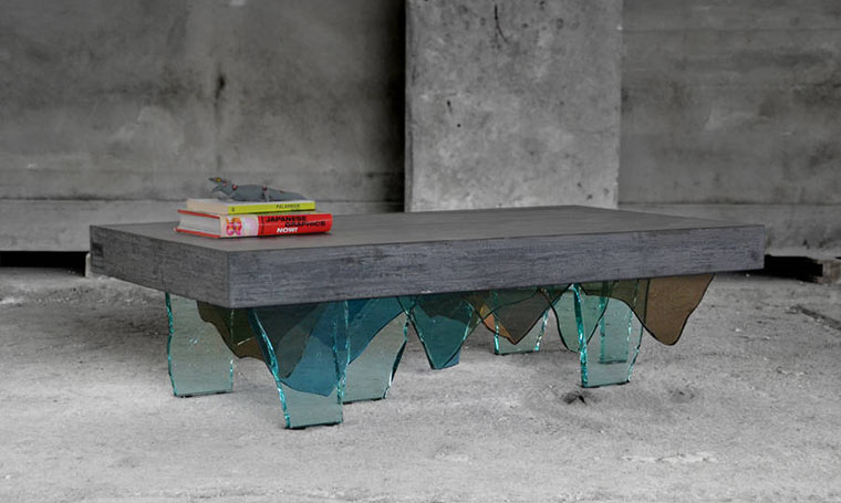Aus der Kategorie „skurrile Kaffeetische“ stammt dieses Design von Daniele Ragazzo. Der concreto coffeetable ist eine Mischung aus hartem Beton und zerbrechlichem Glas, auf dem die Tischplatte aufgespießt zu sein scheint. Schaut super interessant aus, aber die Schnitt- und Bruchgefahr wäre mir persönlich etwas zu hoch…