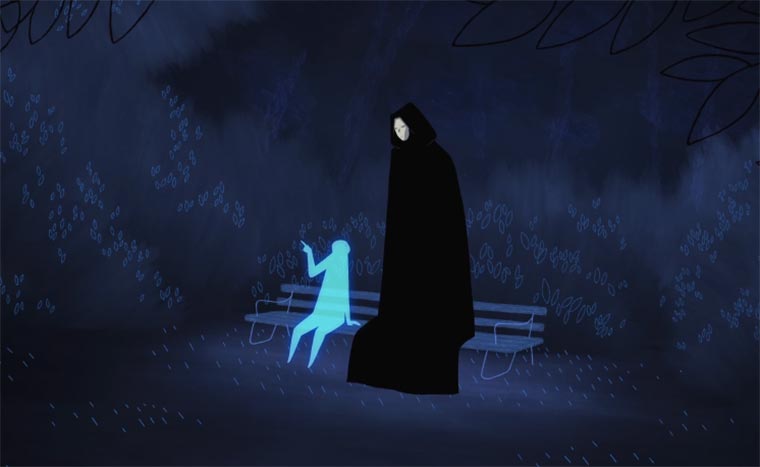 Ich liebe die Atmosphäre in diesem Kurzfilm von Alan Holly und Co. Da spielen der angenehme Animationsstil, die tolle Synchro und die Musik einfach wunderbar zusammen. Und dann gibt es eben noch die fantastische Story um eine Seele, die betrunken dem Tod davon taumelt, um von diesem gesucht und mit allerlei Geschichten rund ums Leben zugeredet zu werden. Okay, irgendwie ist es dann doch wie ein sanfter Drogentrip, der zum Nachdenken anregt. Aber ein toller.