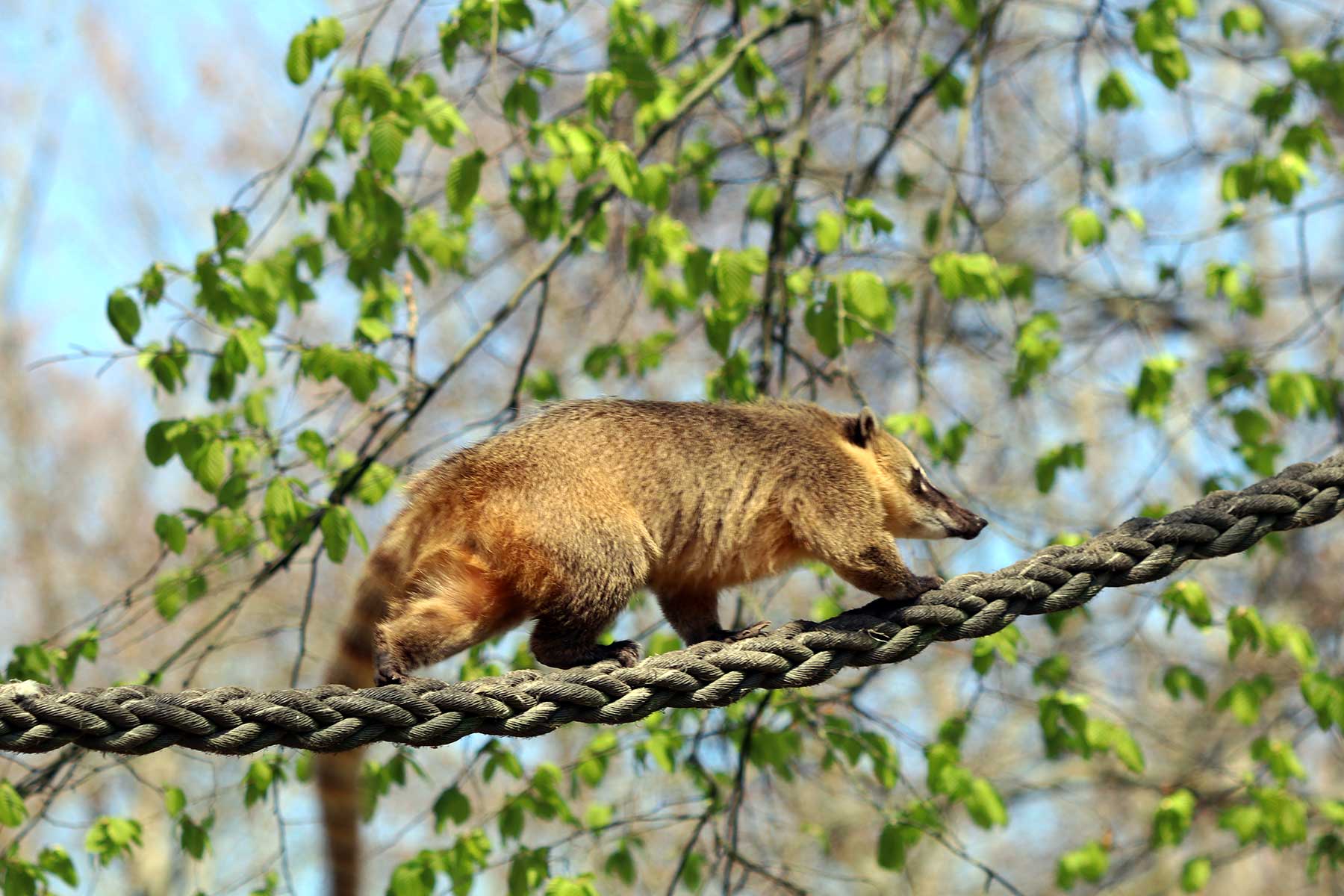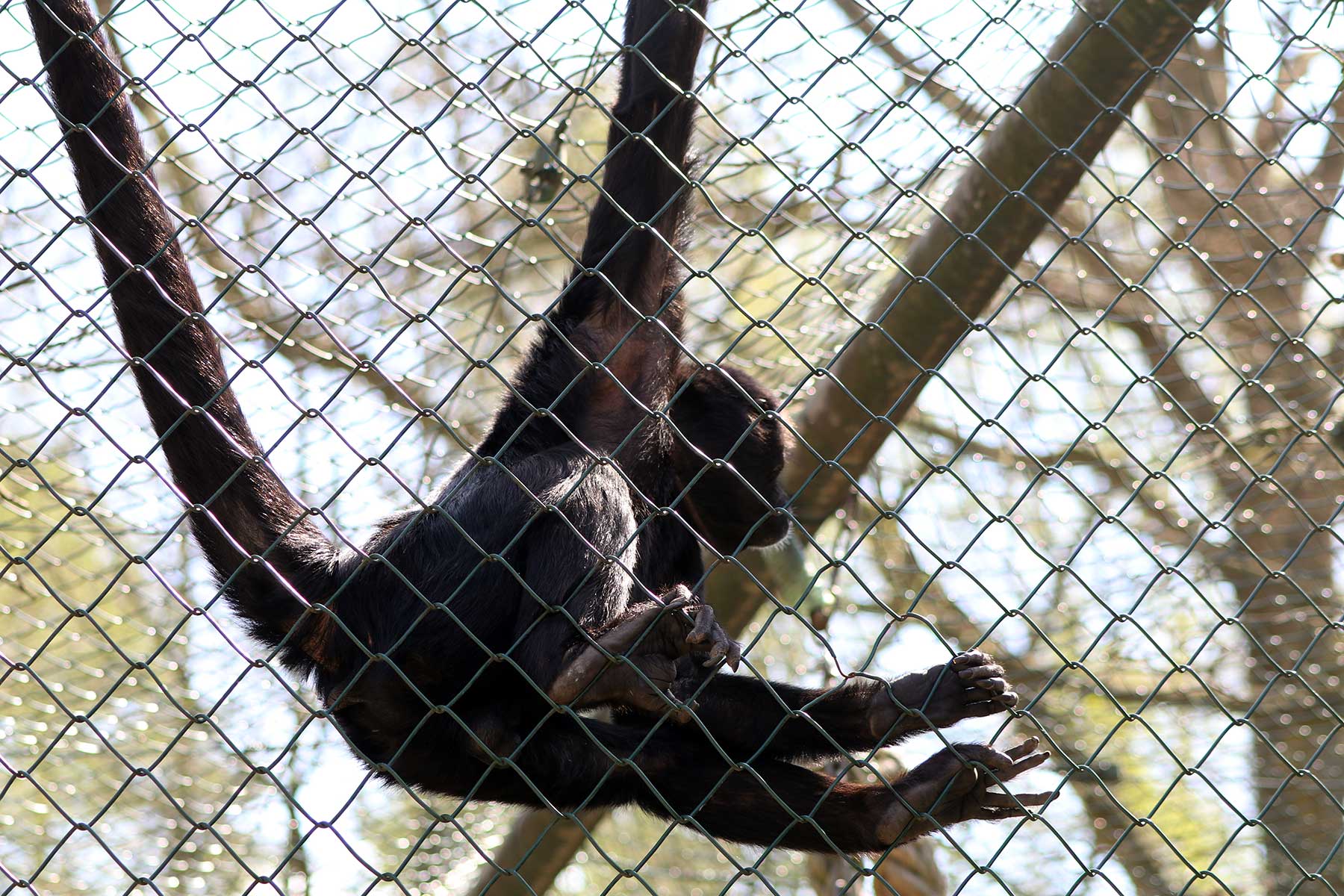 Aber genug des Meckerns über das „Tier Mensch“, es gab nämlich noch viele andere Tierarten, die sich vorbildlich benommen und eh viel interessanter waren! Wobei, ein kleines Äffchen hat sich ebenso wenig um die geltenden Abstandsregeln geschert und sich auf dem Geländer eines Aussichtsturm gefletzt, um sich zu sonnen oder die benachbarten Schimpansen anzuschreien. Süß. Die Kleinen dürfen nämlich im Zoo frei herum laufen und vor allem klettern. Wir haben einige auf dem Dach des Adler-Geheges herum streunern gesehen.