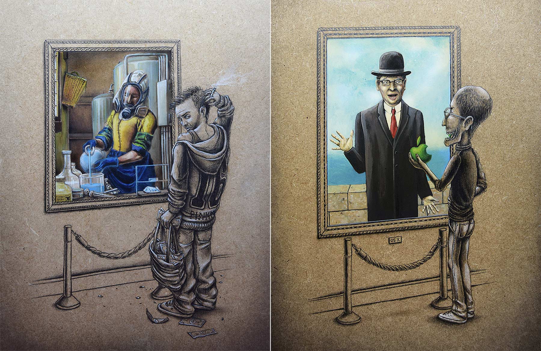 Noch ein Update! Vor rund drei Jahren war der französische Kreative PEZ bereits Gast hier im Blog. Jetzt bin ich über seine tolle Reihe „Muses et Hommes“ gestolpert, in der er bekannten Gemäldeklassikern einen modernen Kontext beschert. Natürlich in gewohnt humoristischer Manier. Dazu noch ein paar weitere neue Motive aus seinem Portfolio, das stets „von Graffiti und Popkultur inspiriert“ ist.