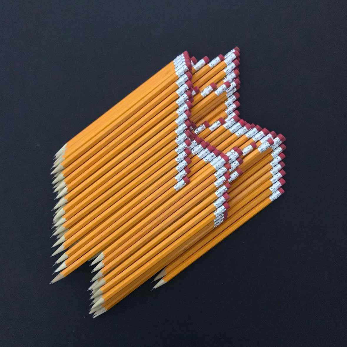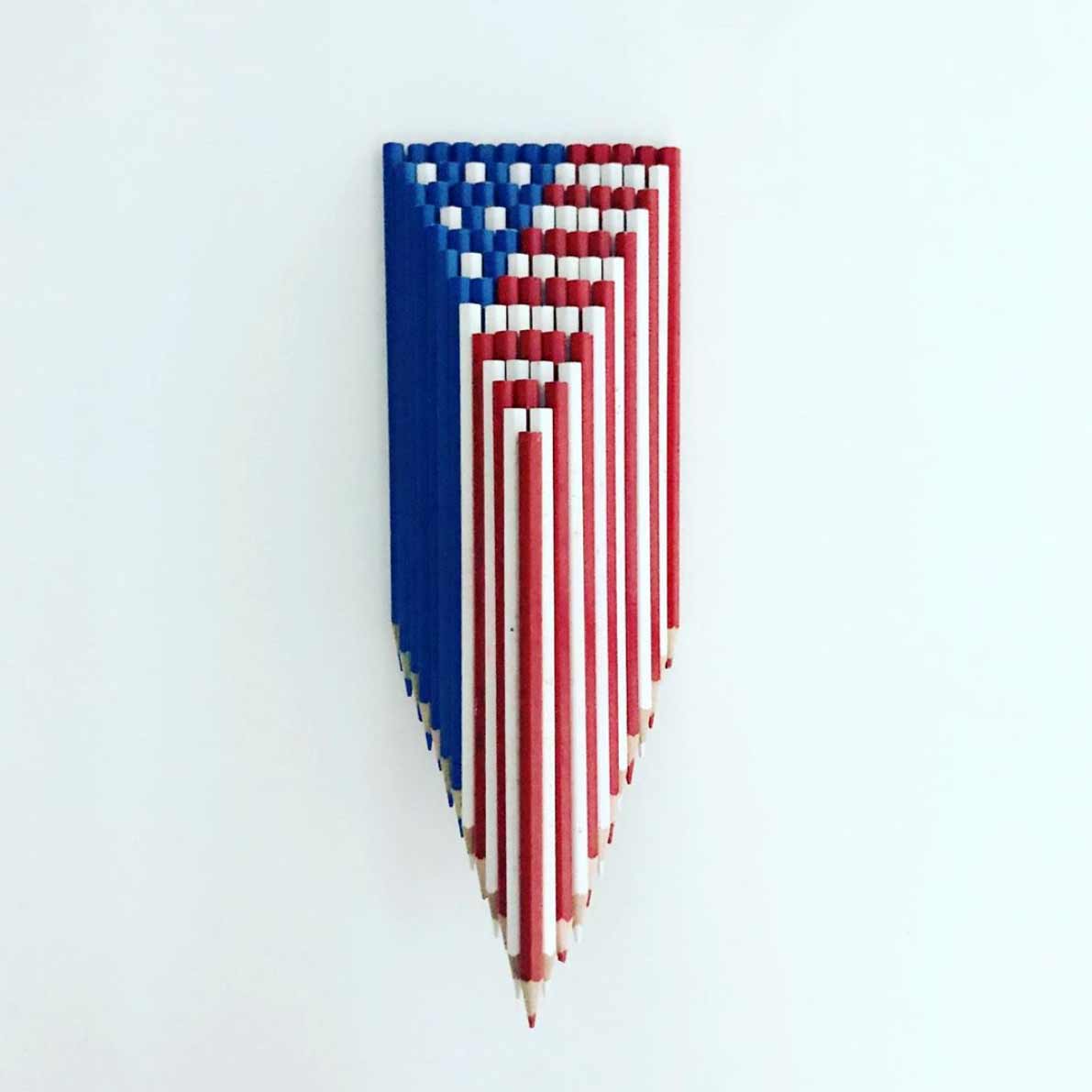 Bashir Sultani ist kanadischer Künstler mit afghanischen Wurzeln und hat bereits mit seiner Kunst aus und mit Salz sowie Zeichnungen auf Bleistiften Erwähnung hier bei mir im Blog gefunden. Das war in den Jahren 2011 und 2013, jetzt geht es mit Bleistiften und Buntstiften weiter, wobei diese selbst zum Kunstmittel werden. Durch smartes Arrangieren der hölzernen Stäbe entstehen gewisse Motive, wobei die Enden mit Aluminium-Teil und Radiergummi in Pixel-Manier fungieren und der Rest der Stifte einen 3D-Effekt suggerieren. Interessantes Konzept, das ich so zuvor noch nicht zu sehen bekommen hatte.