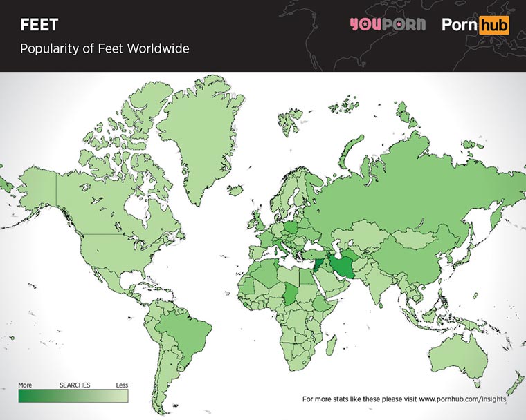 Gemeinsam mit 20 Minuten haben die Fortpflanzungs-Dokumentations-Portale Pornhub und Youporn sich zusammen getan und Zahlen gewälzt. Keine Bange, das hier ist rein wissenschaftlicher und geographischer Natur. Auf Basis des Suchverhaltens ihrer Nutzer weltweit wurden Karten erstellt, die zeigen, welche Präferenzen die einzelnen Nationen hegen. Wer ist eher Brüste-Fan, wer mag lieber Hintern – oder noch anderes. Data porn, quasi.