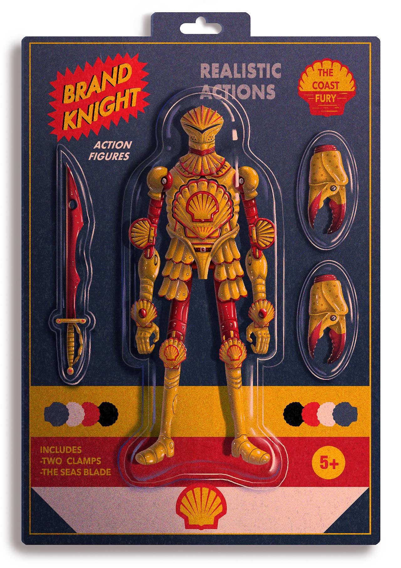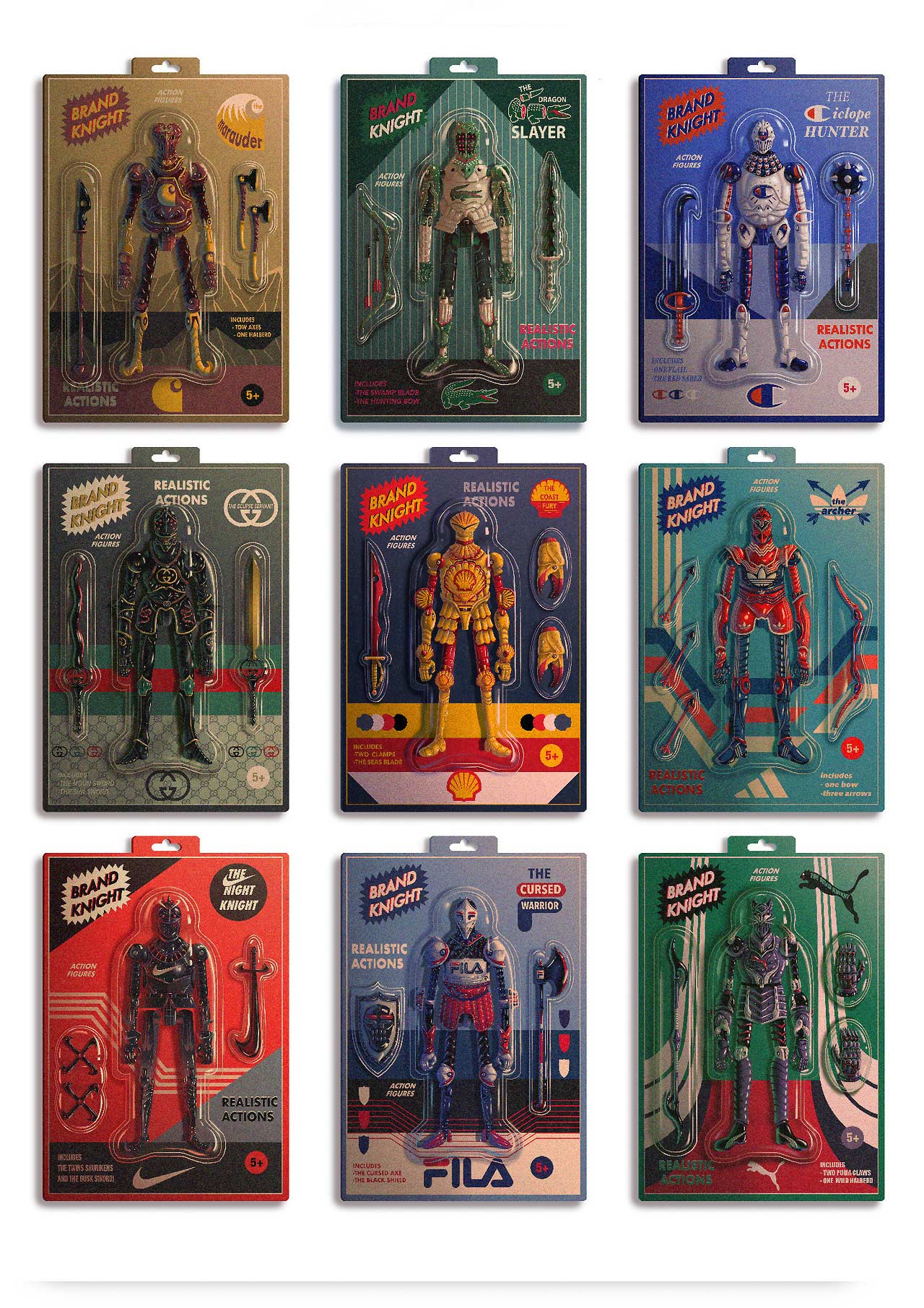 Sehr coole Motivreihe von Dexter Maurer. Der Illustrator aus der Schweiz hat einige Marken zu Superhelden umfunktioniert. Oder zumindest zu Actionfiguren. So kommen bei den „Brand Knights“ weltbekannte Unternehmen von Nike bis Shell zu einer neuen Merchandise-Idee.