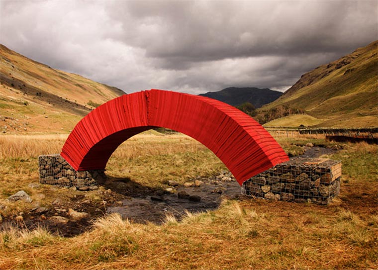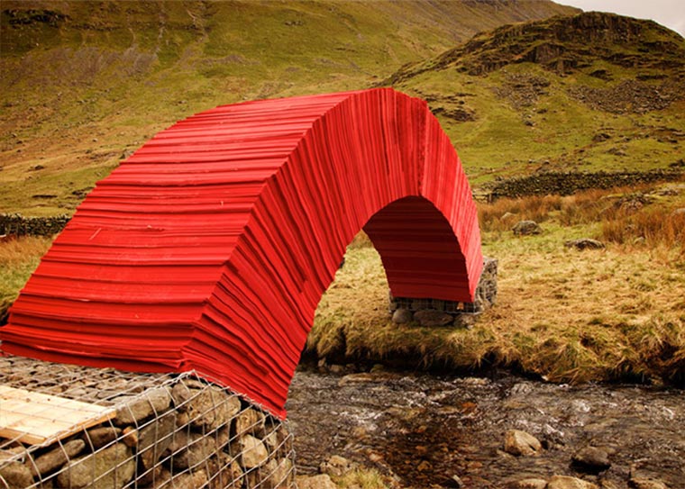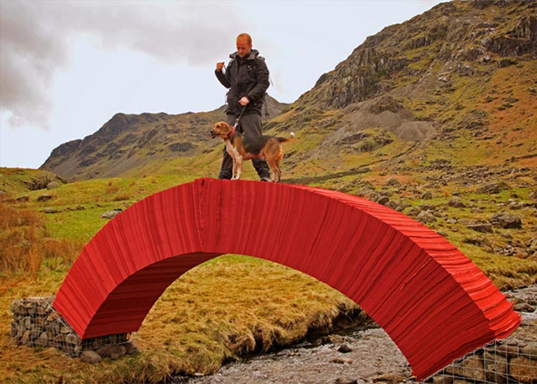 Der Bogenbau ist nun bei Weitem keine Neuentdeckung der Architektur-Kunst. Seit tausenden von Jahren werden Steine im Bogen angebracht um dank Schwerkraft, Reibung und all den anderen tollen physikalischen Gesetzen sich selbst zu tragen. Aber habt ihr das schon einmal mit Papier gesehen? Der britische Künstler Steve Messam hat 22.000 Seiten in einem Bogen verbaut, der sogar als Brücke fungiert. Solange nicht zu viele Leute gleichzeitig darüber schreiten…