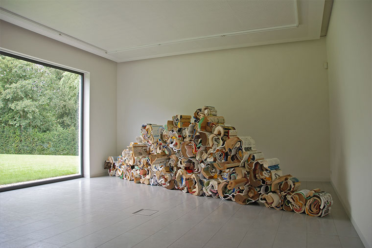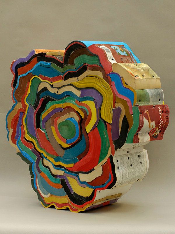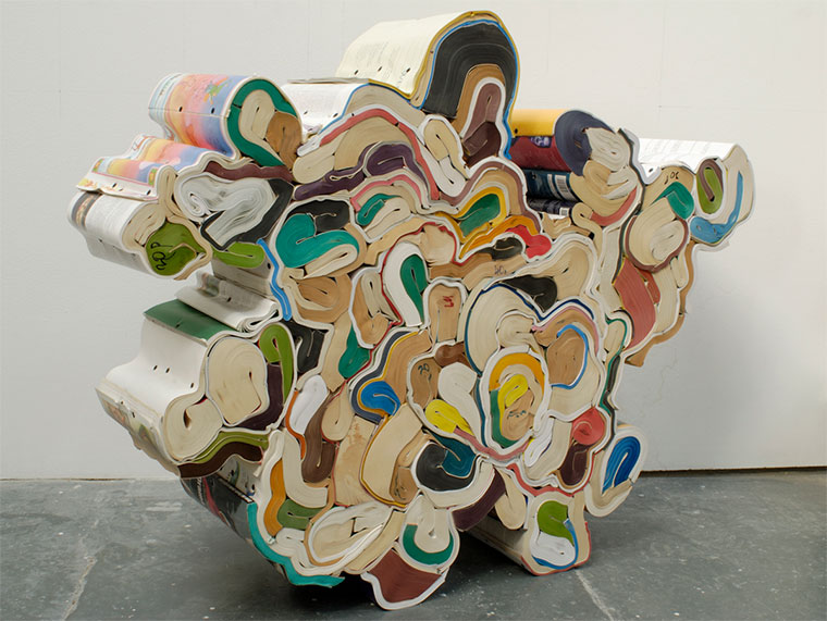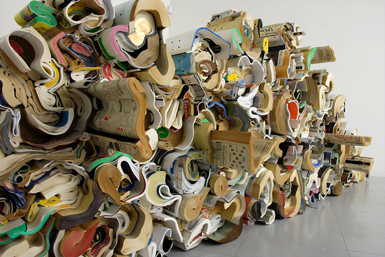 Altpapier-Recycling auf ganz und gar künstlerischem Niveau führt der Brite Jonathan Callan durch. Aus hunderten Büchern und Papieren erstellt der Künstler riesige Skulpturen. Einen Schlag Lack drüber und fertig ist das Kunstwerk tausender verfasster Worte.