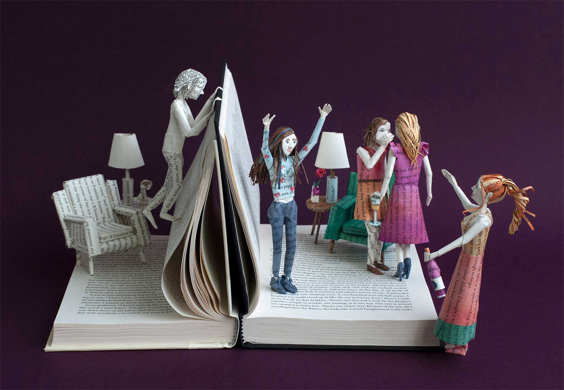 Die im US-Bundesstaat Georgia lebende freischaffende Designerin Bethany Bickley schafft es, Bücher zum Leben zu erwecken. Sie schenkt den Seiten Formen, indem sie kleine Skulpturen erstellt, die in Diaromo-Manier aus den Büchern selbst emporzuspringen scheinen. Das erinnert stark an die Papierseiten-Arbeiten, die ich bereits von Jodi Harvey-Brown oder auch Emma Taylor bereits hier im Blog hatte. Aber sowas ist wie ich finde immer wieder schön anzusehen, daher hier eine kleine Auswahl der „Book Sculptures“ von Bickley, die mir mit am besten gefallen.