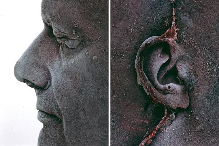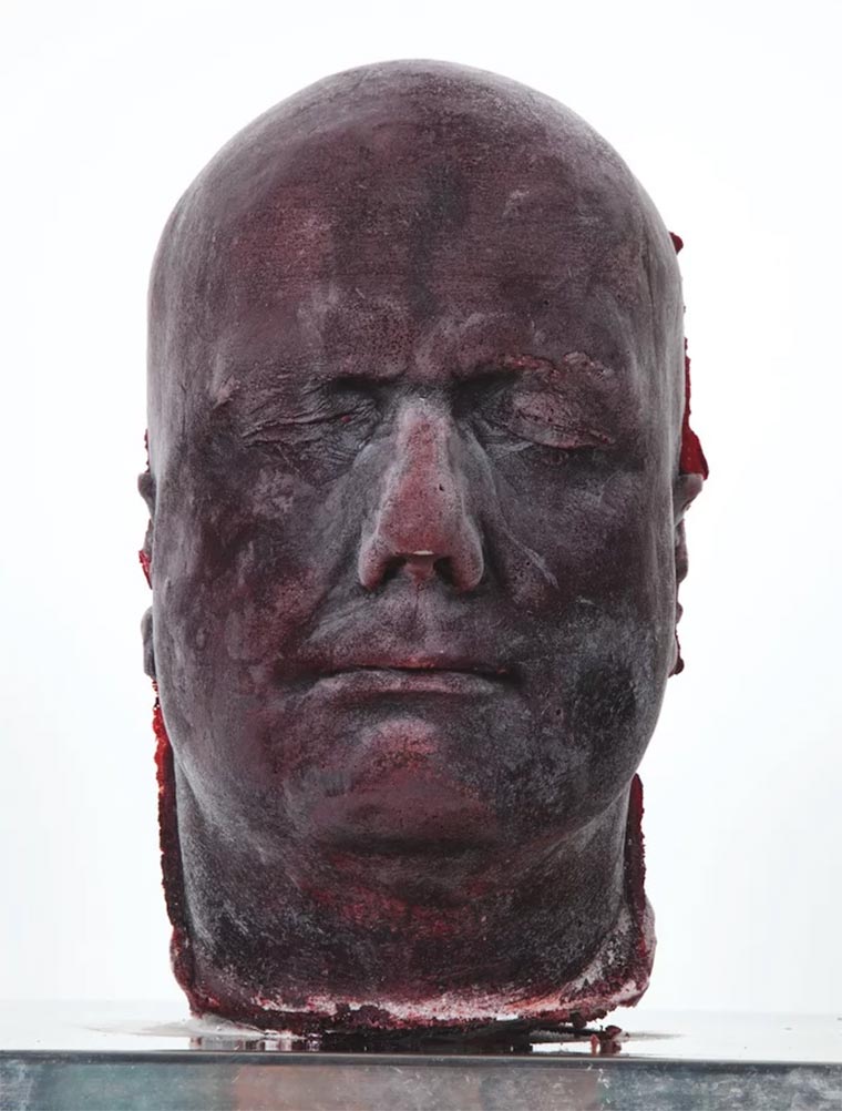 Marc Quinn ist definitiv ein Künstler, der mit Herzblut bei der Sache ist! Und er geht auch regelmäßig Blut spenden – wenn auch nur für sich… Seit 1991 (s. Bild oben) stellt er sich in seiner Reihe Self regelmäßig selbst da. Aus seinem eigenen Blut. Sieht ein bisschen aus wie dieses Beef Jerky für Vampire…