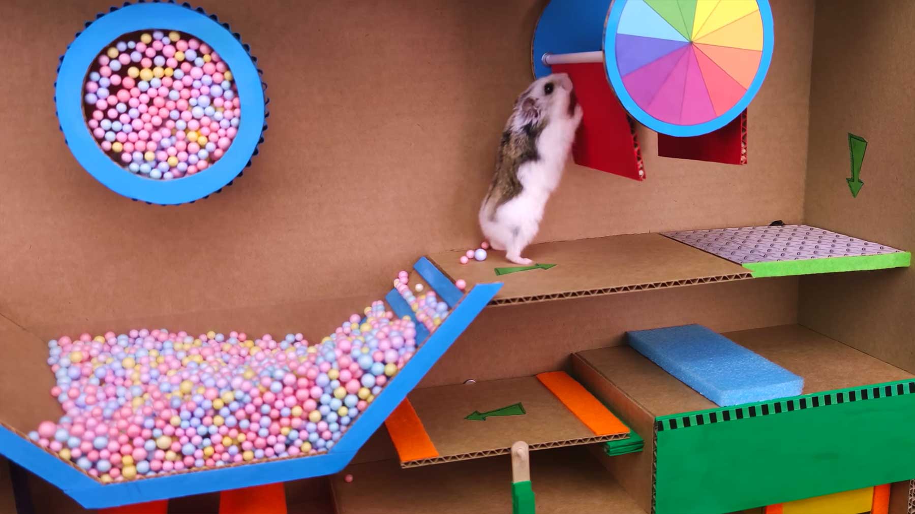 Ich hatte bereits ein selbstgebautes Hamster-Labyrinth sowie einen Hamster-Hindernis-Parcour im „Portal“-Design hier im Blog, jetzt hat Mister Hamster nochmal einen drauf gesetzt und einen schöneren und längeren Kurs für seinen süßen Nager geschaffen, der voller beweglicher Plattformen und bunter Überraschungen ist. Alles aus Pappe und weichen Materialien gebaut, damit dem Kleinen nichts passiert.