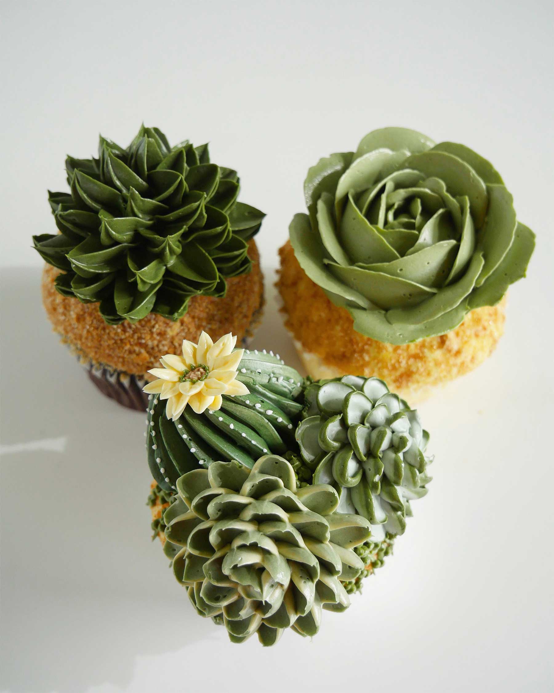 Seit rund zwei Jahren kreiert die kalifornische Hobby-Konditorin Leslie Vigil appetitliche Zimmerpflanzen aus Buttercreme. Die Torten sehen vom Weiten aus wie wohlbedacht zusammengesetzte florale Arrangements, bestehen dann aber doch hauptsächlich aus Zucker, Mehl und Butter. Auch die kleinen Cupcake-Variationen, die in essbaren Tontöpfchen voll Schokoladenerde daher kommen, gefallen mir sehr.