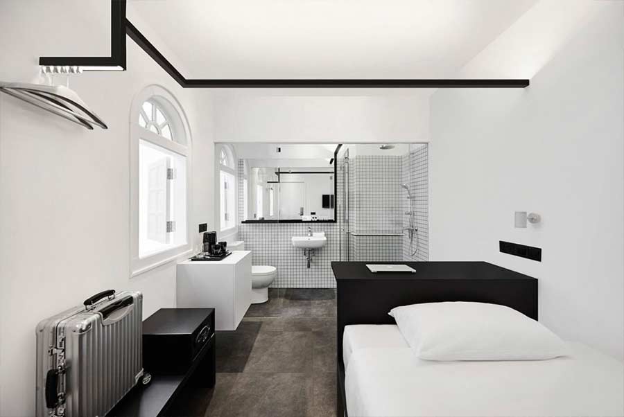Das „Hotel Mono“ besitzt es einfaches wie zeitloses Farbsystem: Schwarz und Weiß. Und das in möglichst klarem Kontrast zueinander. In Singapur können Design-Liebhaber in der nicht nur in Sachen Farbe, sondern auch bei den Formen sehr robust gehaltenen Unterkunft nächtigen. Okay, bist auf die Fassade, die mit ihrem wunderbar altertümlichen Stil nochmals einen weiteren Kontrast hinzufügt. Love it!