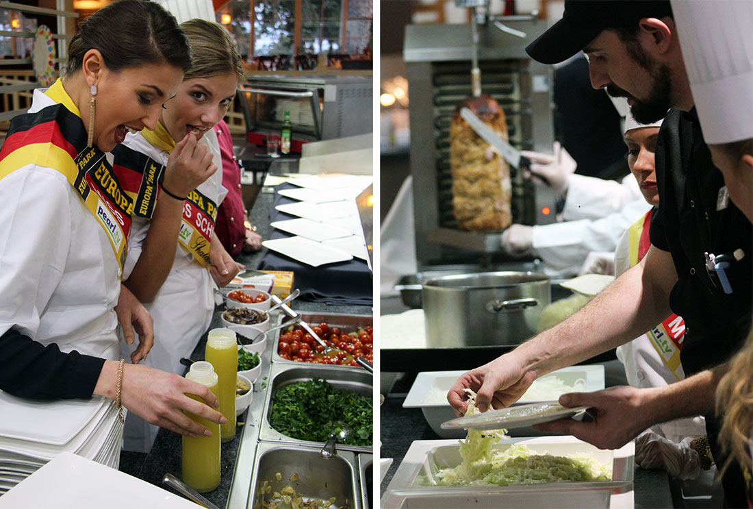 Abends kam der deutlich unterhaltsamere Teil: Ich wurde von den Missen bekocht! Okay, bekocht nicht wirklich, die Damen haben eher an den Kochstationen assistiert, „zusammen gesetzt“ und ausgeteilt. Und ja, das war (leider) nicht ausschließlich für mich, sondern auch für diese anderen 700 Gäste, die vor Ort waren.