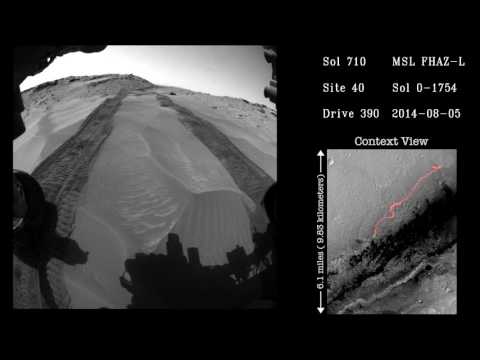 „Five years of images from the front left hazard avoidance camera (Hazcam) on NASA’s Curiosity Mars rover were used to create this time-lapse movie. The inset map shows the rover’s location in Mars‘ Gale Crater. Each image is labeled with the date it was taken, and its corresponding sol (Martian day), along with information about the rover’s location at the time.“