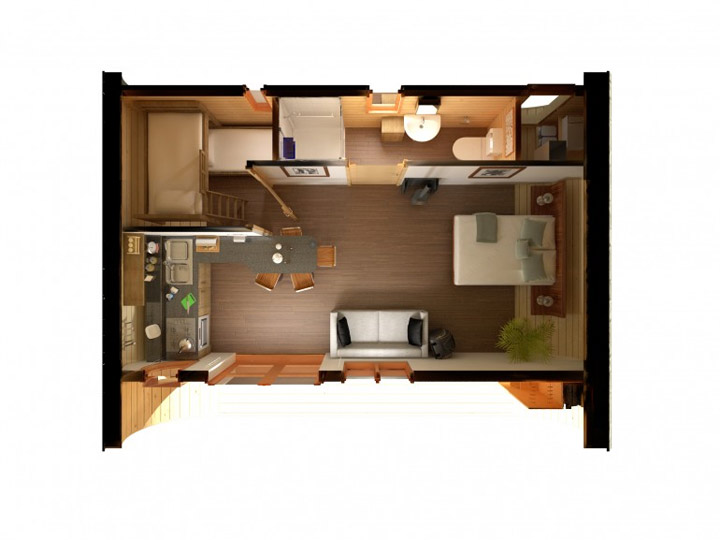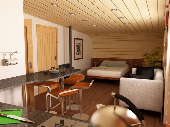 Sehr schöne Idee. Als Gästehaus oder Hotelzimmer sicherlich ein einmaliges Wohnerlebnis.