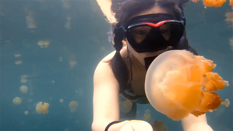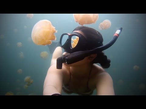 Sehr schöne Aufnahmen von Nana Trongratanawong, die inmitten angeblich Millionen an goldenen Quallen schnorchelt. Aufgenommen wurde das Ganze passender Weise im Jellyfish Lake in Palau. Sensationelle Bilder.